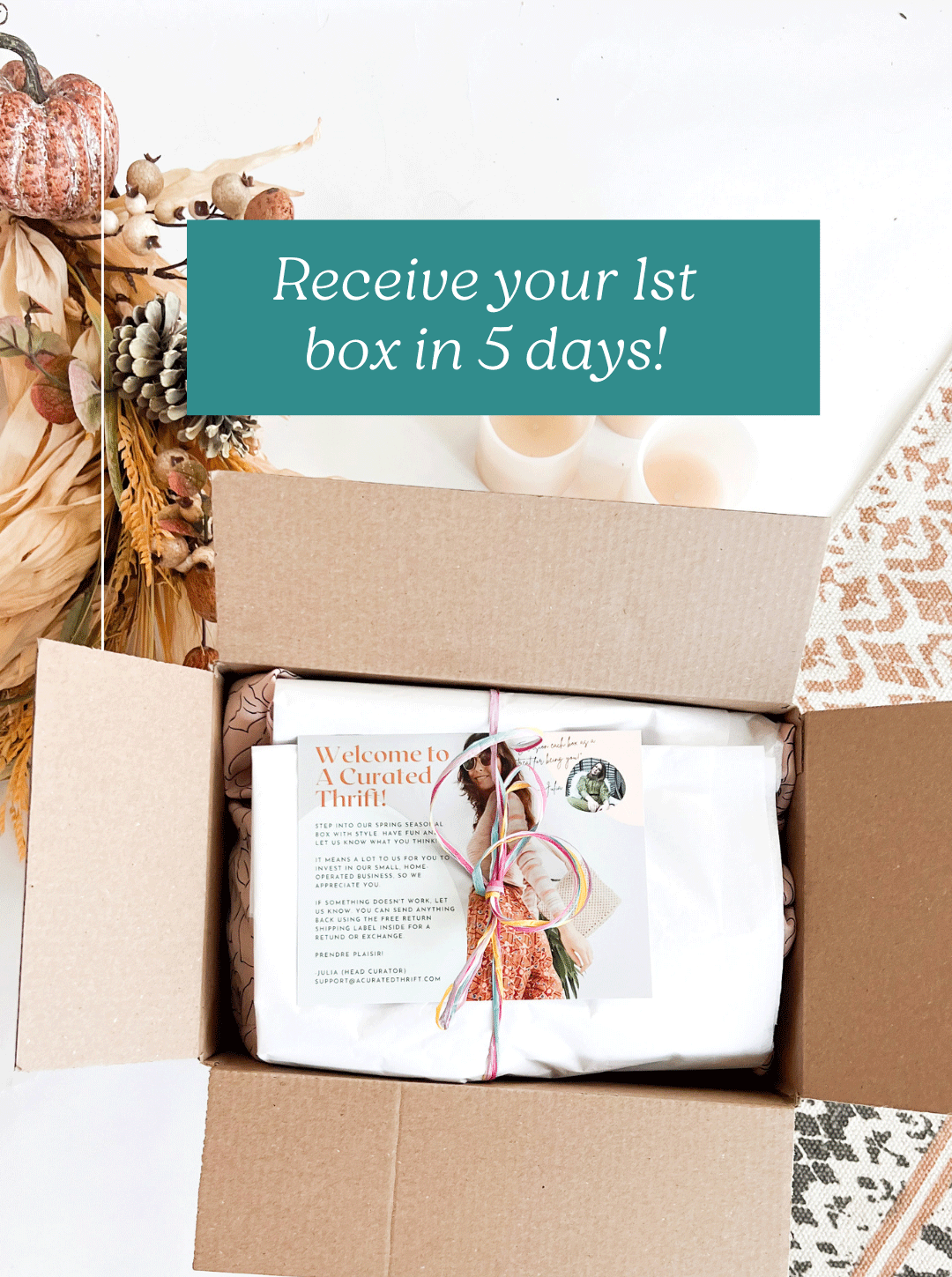 Receive our thrift box quarterly! Now you can get the best of the best every season. We'll mix both modern and high-quality vintage to create one-of-a-kind looks you can always have as your go-to.